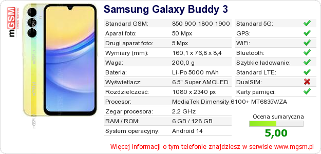 Dane telefonu Samsung Galaxy Buddy 3 na Twojej stronie