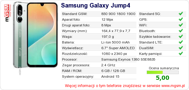 Dane telefonu Samsung Galaxy Jump4 na Twojej stronie