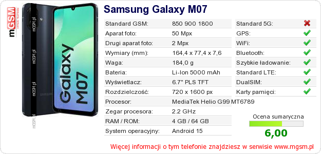Dane telefonu Samsung Galaxy M07 na Twojej stronie