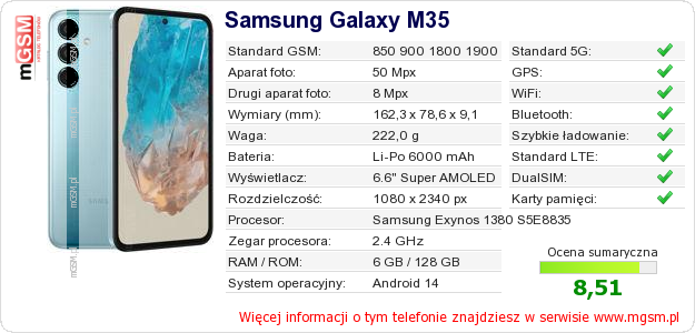Dane telefonu Samsung Galaxy M35 na Twojej stronie
