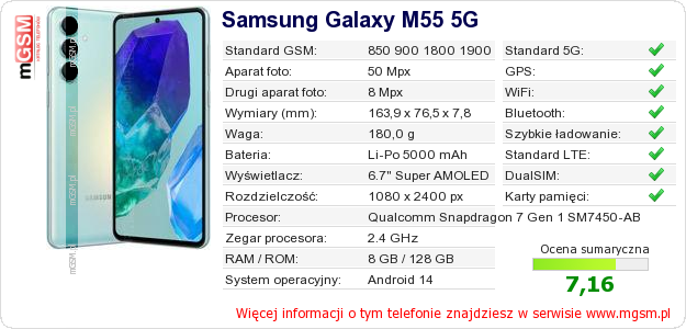Dane telefonu Samsung Galaxy M55 5G na Twojej stronie