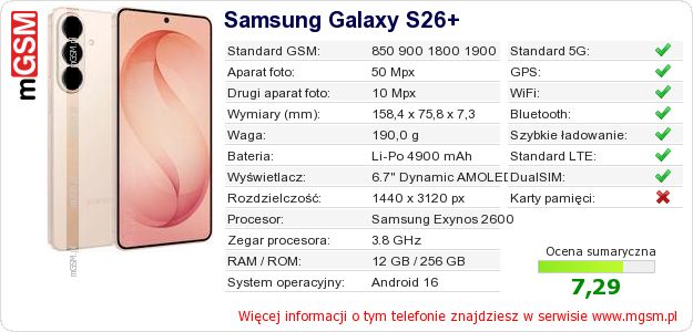 Dane telefonu Samsung Galaxy S26+ na Twojej stronie