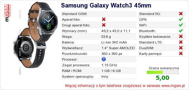 Dane telefonu Samsung Galaxy Watch3 45mm na Twojej stronie