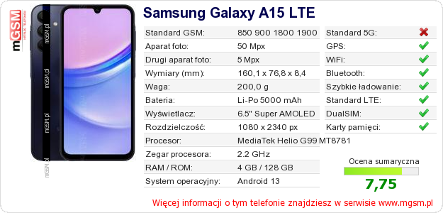 Dane telefonu Samsung Galaxy A15 LTE na Twojej stronie