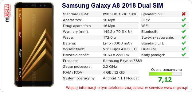 Dane telefonu Samsung Galaxy A8 2018 Dual SIM na Twojej stronie