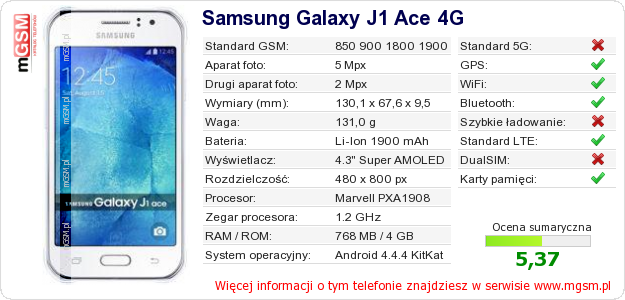 Dane telefonu Samsung Galaxy J1 Ace 4G na Twojej stronie