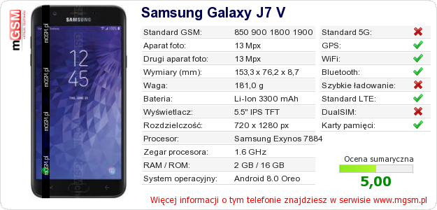 Dane telefonu Samsung Galaxy J7 V na Twojej stronie