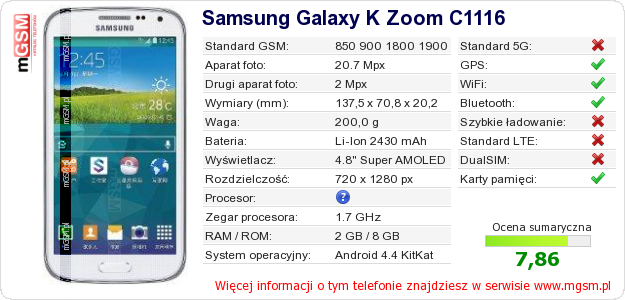 Dane telefonu Samsung Galaxy K Zoom C1116 na Twojej stronie