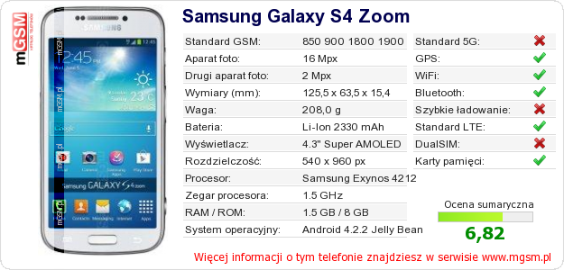 Dane telefonu Samsung Galaxy S4 Zoom na Twojej stronie