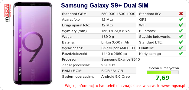 Dane telefonu Samsung Galaxy S9+ Dual SIM na Twojej stronie