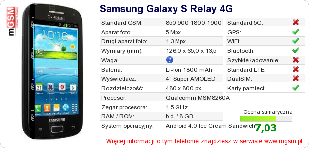 Dane telefonu Samsung Galaxy S Relay 4G na Twojej stronie