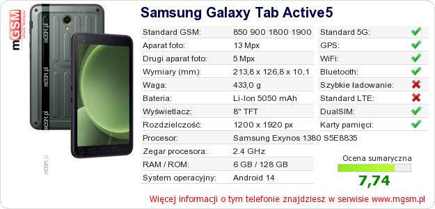 Dane telefonu Samsung Galaxy Tab Active5 na Twojej stronie