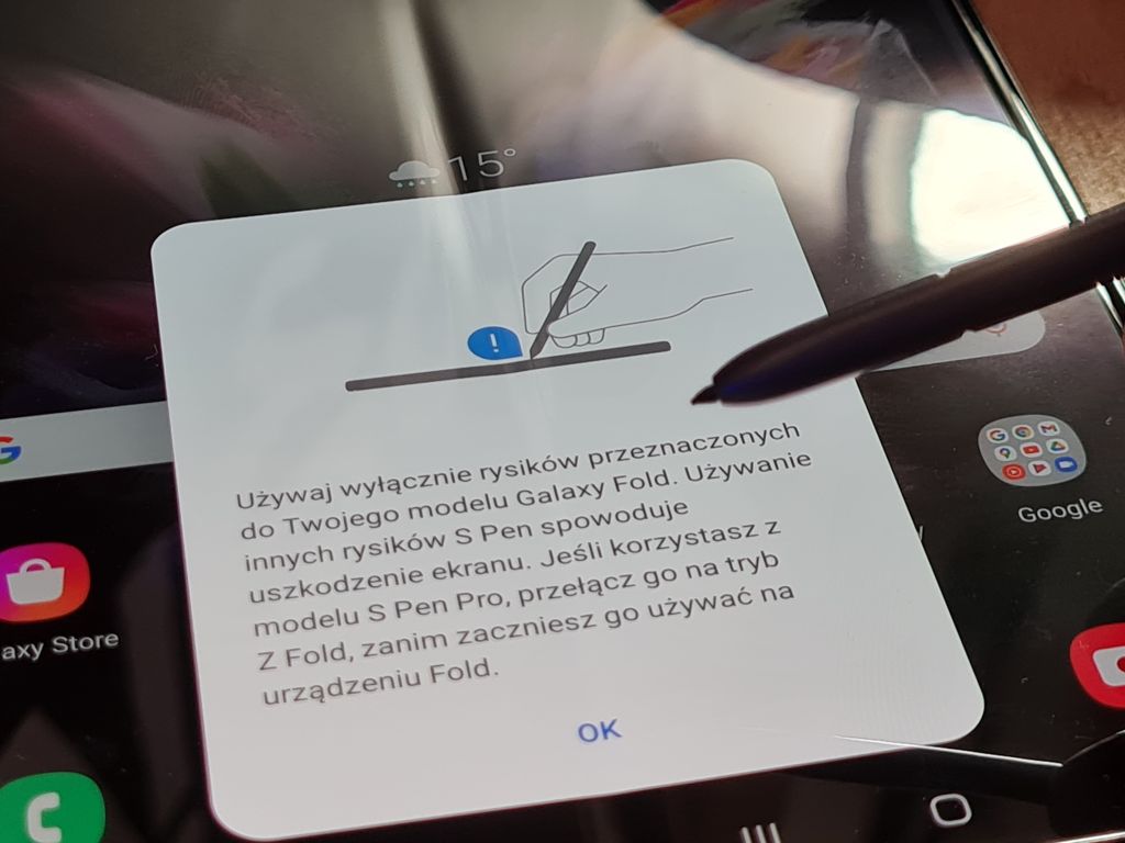 Moim zdaniem, najistotniejszą modyfikacją i głównym argumentem stanowiącym przewagę Galaxy Z Fold 3 nad "Dwójką" jest certyfikat szczelności obudowy IPx8! To pierwszy na świecie składany smartfon, który może pochwalić się takimi możliwościami. Kolejną z nowości jest możliwość korzystania z rysika na wewnętrznym, elastycznym wyświetlaczu. Niestety, z racji specyfiki wyświetlacza, rysik musi mieć specjalną, amortyzowaną końcówkę - a wcześniejsze modele S Pen nie są obsługiwane. Co więcej, rysik trzeba zakupić osobno i nosić w średnio praktycznym pokrowcu założonym na telefon - ale to coś zupełnie nowego.