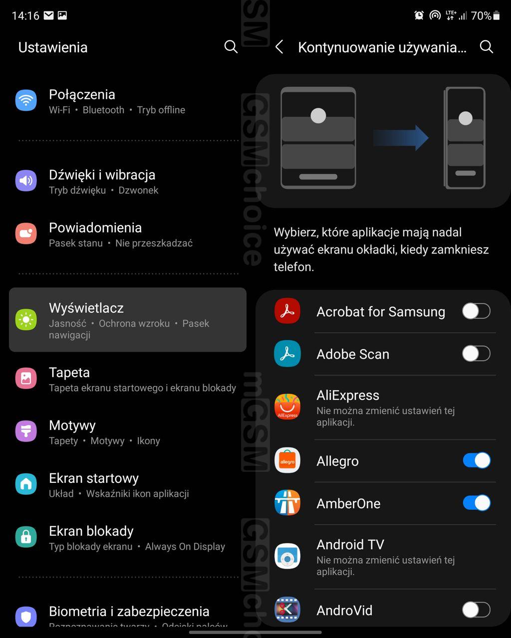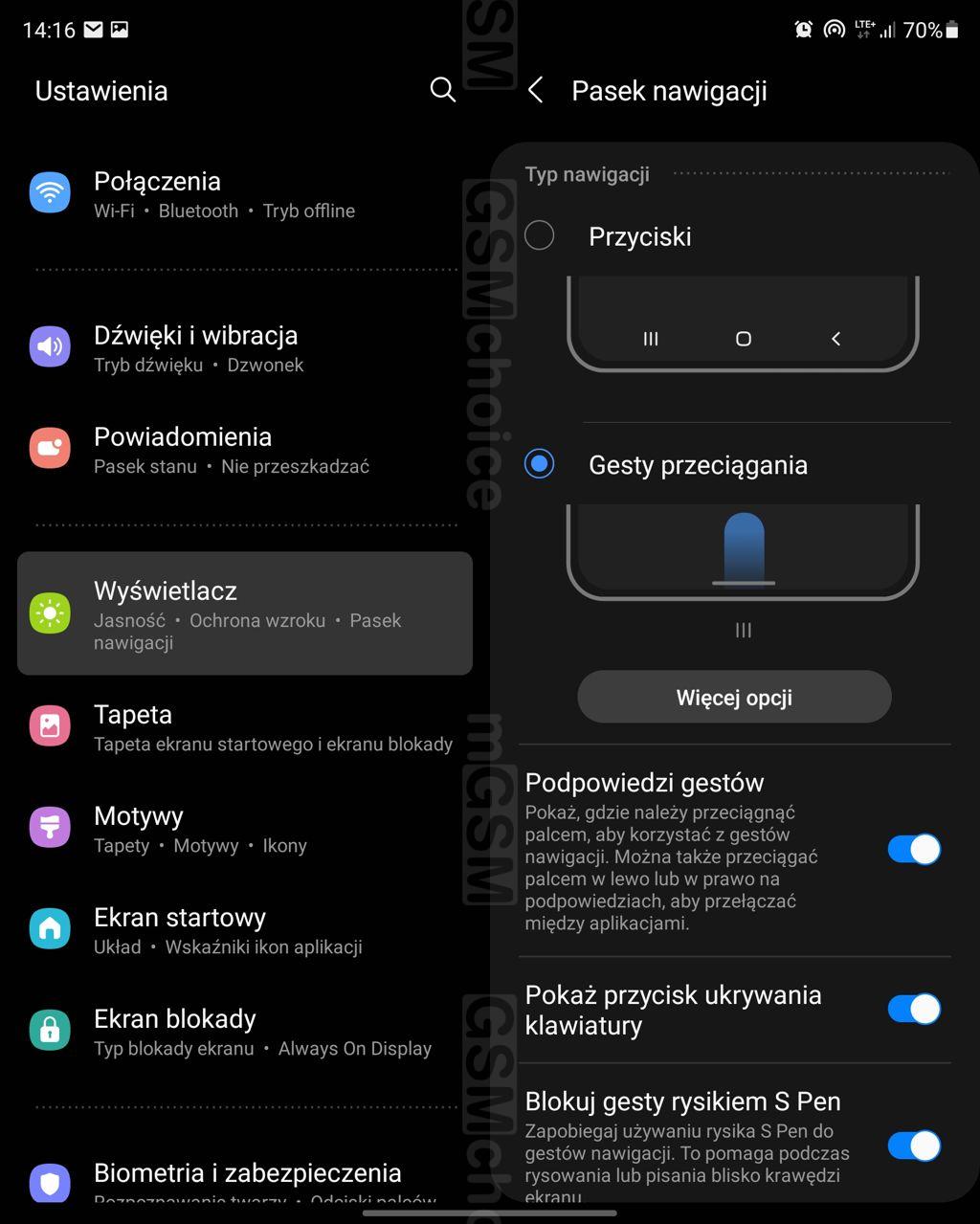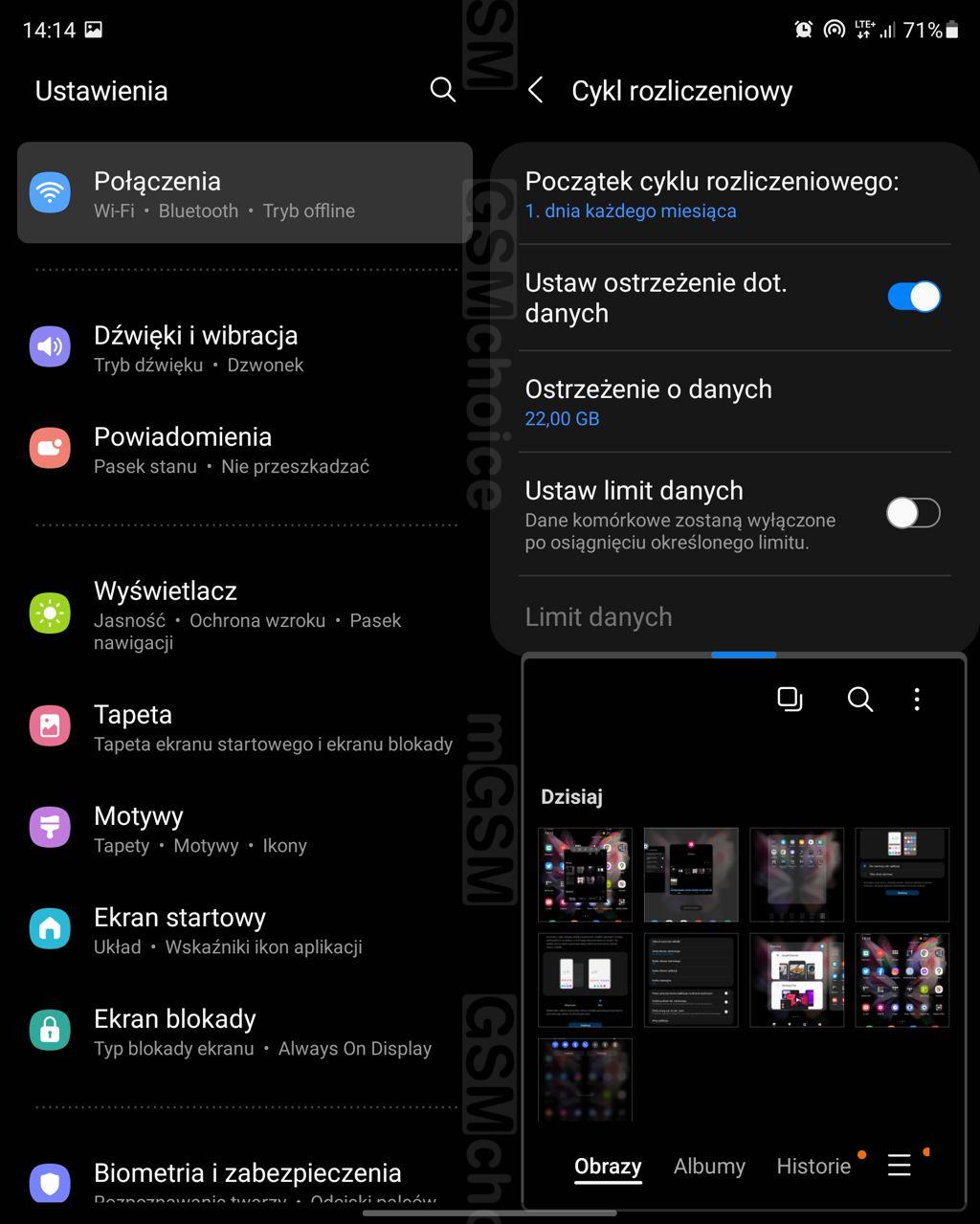 Interfejs umożliwia sensowne wykorzystanie tej możliwości. Co mi się nie podoba? Na wewnętrznym ekranie wciąż widać wyraźne załamanie w miejscu, gdzie się zgina, zaś zewnętrzny ekran jest zbyt wąski, by wyświetlać wygodną do pisania klawiaturkę. Ponadto, wewnętrzny, elastyczny wyświetlacz sprawia wrażenie "plastikowego", miękkiego w dotyku. Mnie to nie przeszkadza - ale zaznaczam, że wrażenie jest inne, niż w przypadku klasycznych "szkiełek".