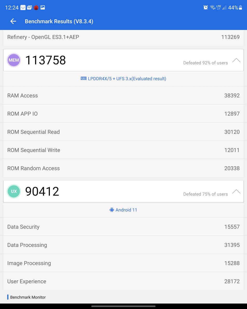 Wspomniałem, że na Foldzie nie doświadczycie przycinek... Trudno się ich spodziewać, gdy na pokładzie mamy Snapdragona 888, 12 GB RAM-u i szybką pamięć wewnętrzną UFS 3.1. W codziennej eksploatacji wydajność smartfonu nie pozostawia wiele do życzenia, ale czar może prysnąć. Kiedy? Galaxy Fold 3 wybitnie nie lubi pracy pod większym obciążeniem, a już z pewnością nie znosi benchmarków. Te - szczególnie w wydaniu strestestów - dobitnie pokazują, że wydajność tego smartfonu jest nierówna. Po kilku cyklach testów, zauważalnie spada.