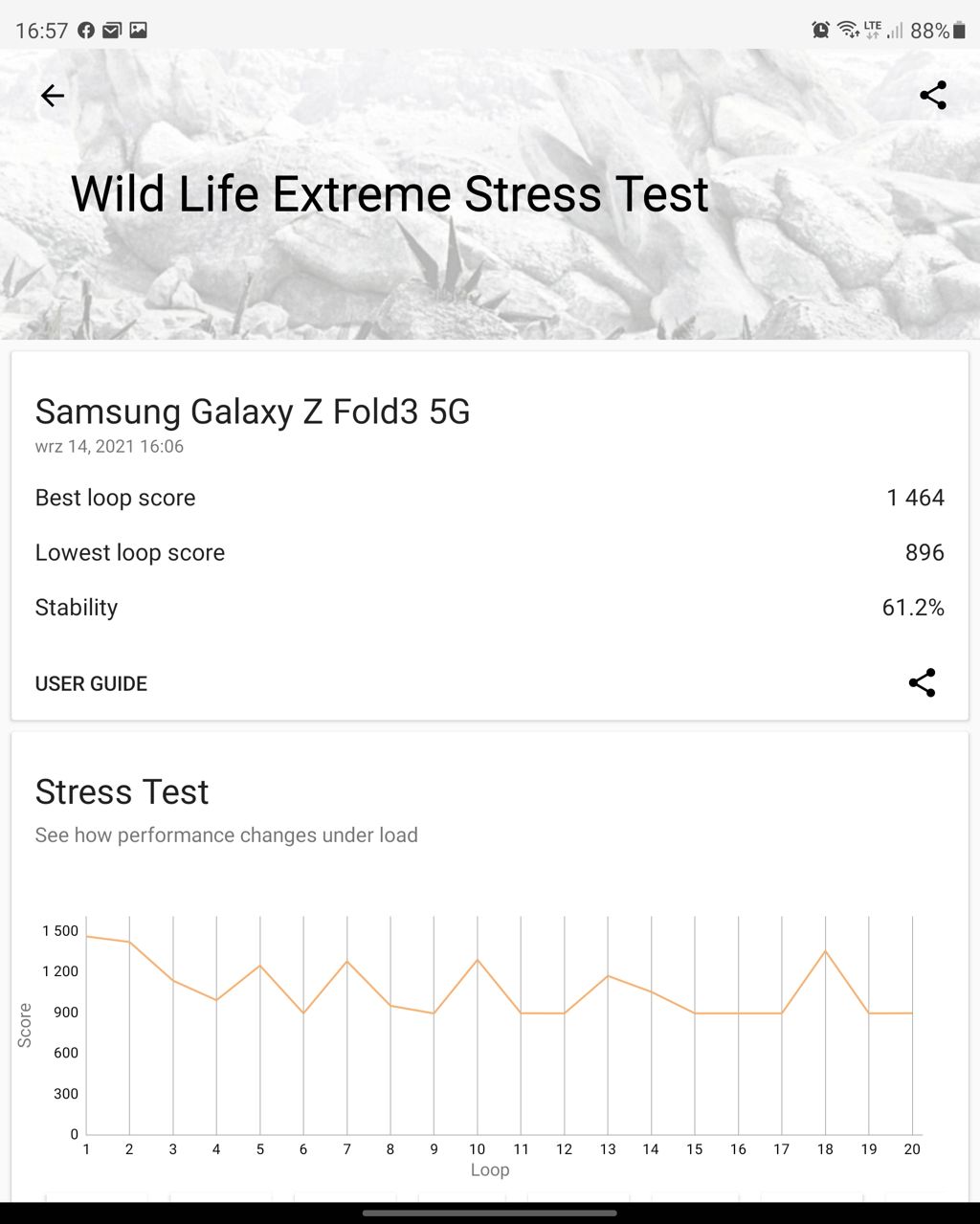 Szczerze mówiąc, w normalnej eksploatacji nie powinniście odczuć niedoborów płynności, bowiem zapas mocy pozostaje spory, ale hardkorowy gracz chyba już zacząłby narzekać. Stabilność wydajności poniżej 70% nie jest tym, czego oczekiwałbym od smartfonu w tej cenie. Z drugiej strony - to urządzenie do pracy, przeznaczone raczej dla biznesmena, a nie wytrawnego gamera... Na pocieszenie pozostaje mi to, że nie udało mi się rozgrzać Folda poza granice rozsądku, choć ciepełko było już wyczuwalne...
