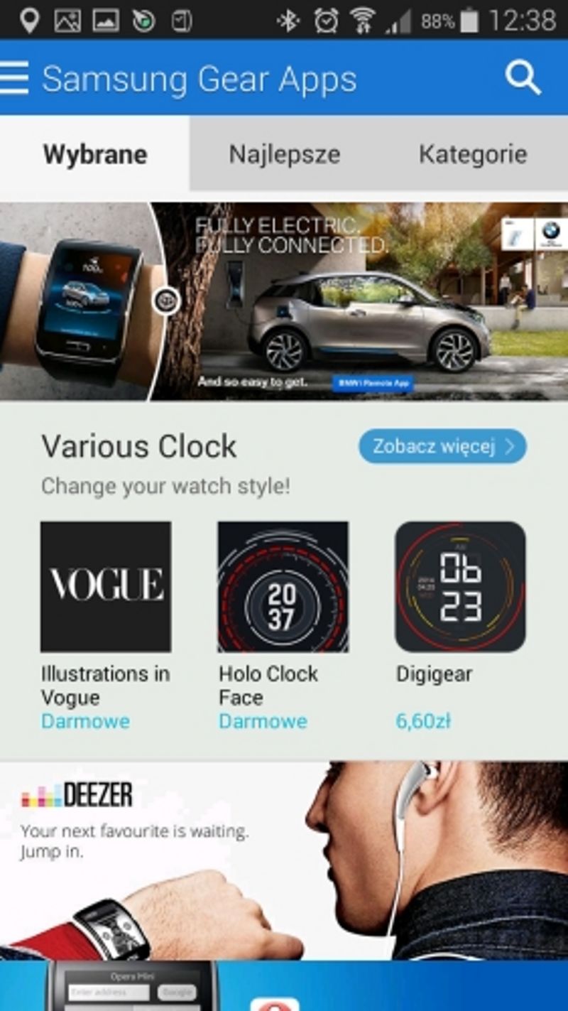 Podobnie, jak sporo jest aplikacji, które mogą poszerzyć funkcjonalność Gear S. Weźmy choćby Operę Mini, pozwalającą na przeglądanie internetu czy wbudowanego klienta e-mail, pozwalającego nie tylko odczytać, ale i napisać wiadomość. Resztę - zależnie od potrzeb, możemy doinstalować z dedykowanego sklepu Gear. Niestety, by to zrobić musimy wrócić do aplikacji Gear Manager na smartfonie Samsunga. To dokładnie ta sama aplikacja, którą opisywałem w recenzji Gear 2 i Gear 2 Neo...