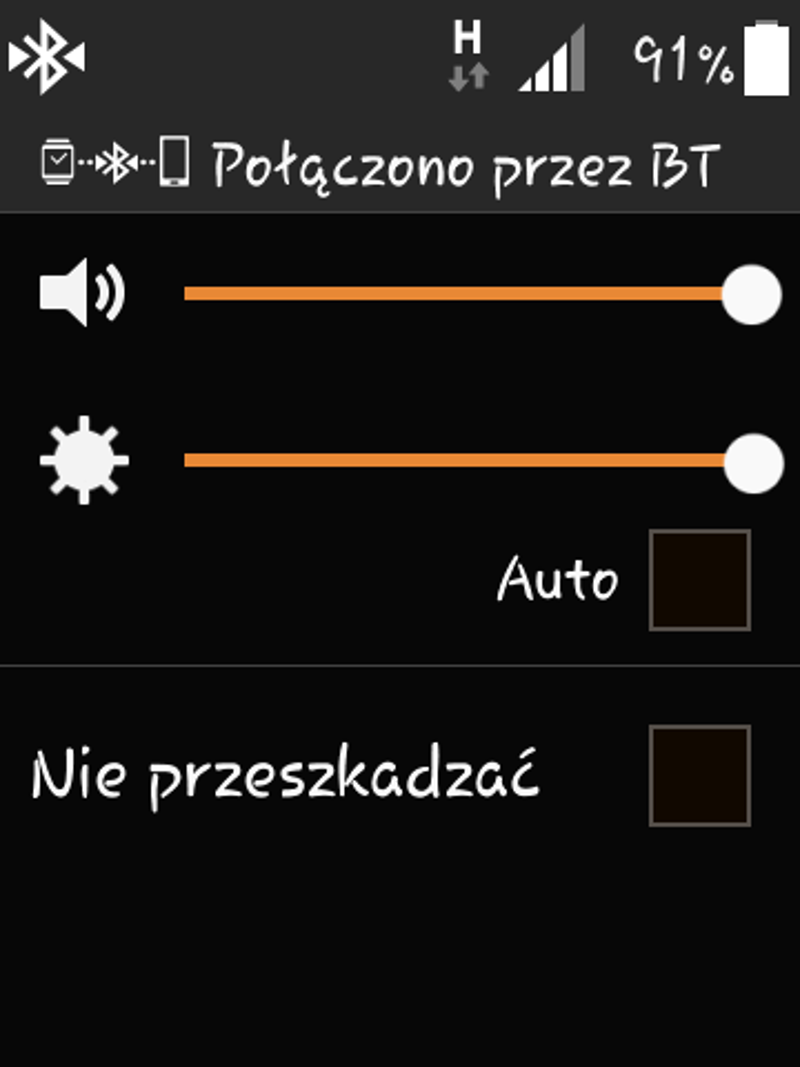 Interfejs zegarka (działającego jak pamiętamy na platformie Tizen) jest prosty i przejrzysty, podobnie, jak nawigacja po nim. Oparto ją o cztery podstawowe gesty. Przewinięcie ekranu w dół daje nam dostęp do paska ustawień, w którym możemy regulować jasność ekranu i siłę głosu. Widzimy tam również stan baterii i modułów łączności. Ekran ten możemy wywołać również stuknięciem dwoma palcami w pulpit.