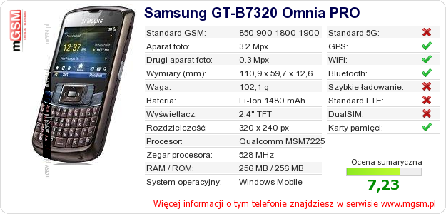 Dane telefonu Samsung GT-B7320 Omnia PRO na Twojej stronie