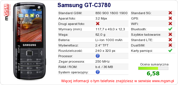 Dane telefonu Samsung GT-C3780 na Twojej stronie