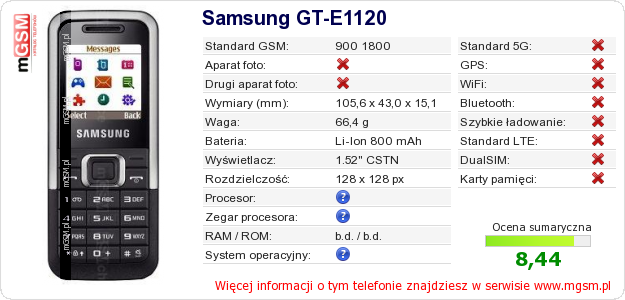 Dane telefonu Samsung GT-E1120 na Twojej stronie