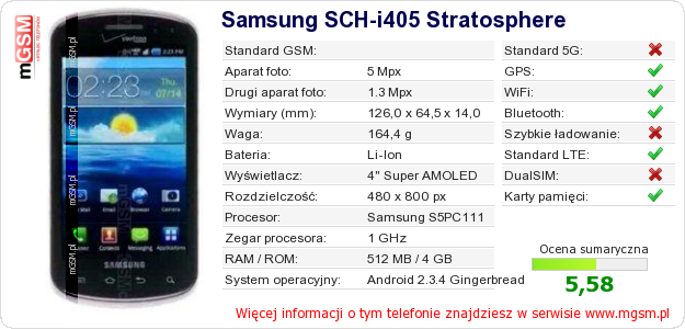 Dane telefonu Samsung SCH-i405 Stratosphere na Twojej stronie