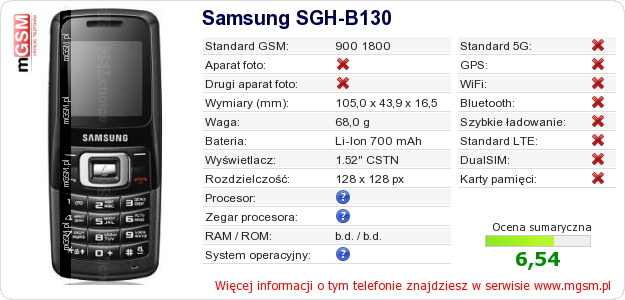 Dane telefonu Samsung SGH-B130 na Twojej stronie