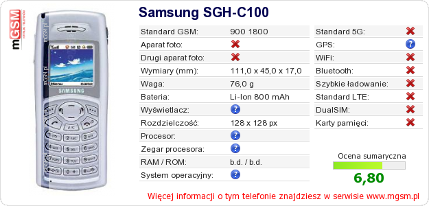 Dane telefonu Samsung SGH-C100 na Twojej stronie