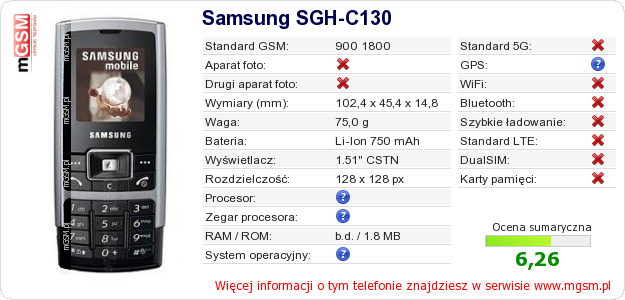 Dane telefonu Samsung SGH-C130 na Twojej stronie
