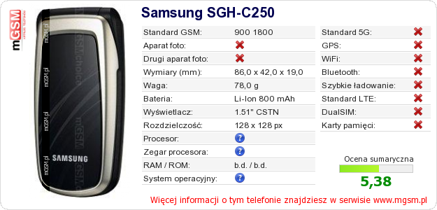 Dane telefonu Samsung SGH-C250 na Twojej stronie
