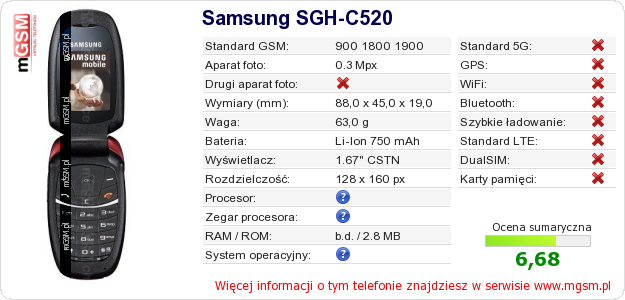 Dane telefonu Samsung SGH-C520 na Twojej stronie