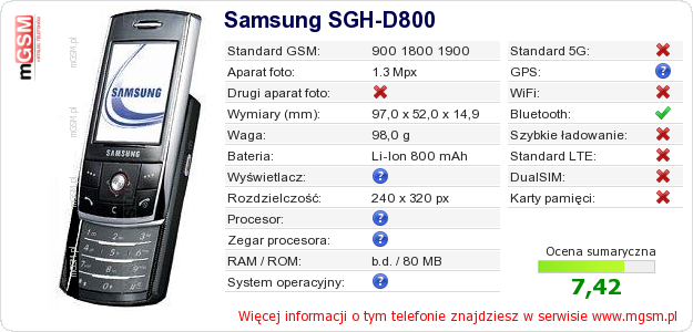 Dane telefonu Samsung SGH-D800 na Twojej stronie