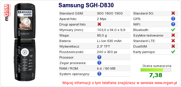 Dane telefonu Samsung SGH-D830 na Twojej stronie