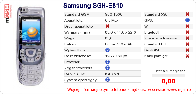 Dane telefonu Samsung SGH-E810 na Twojej stronie