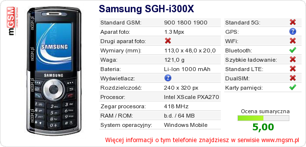 Dane telefonu Samsung SGH-i300X na Twojej stronie