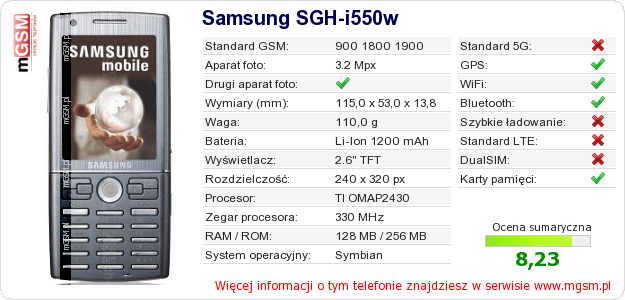Dane telefonu Samsung SGH-i550w na Twojej stronie