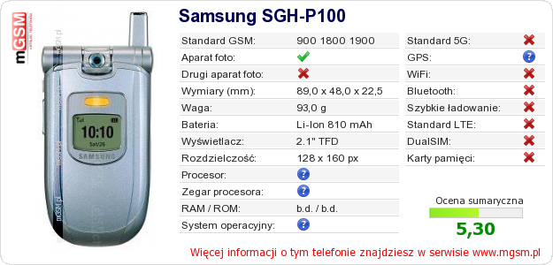 Dane telefonu Samsung SGH-P100 na Twojej stronie