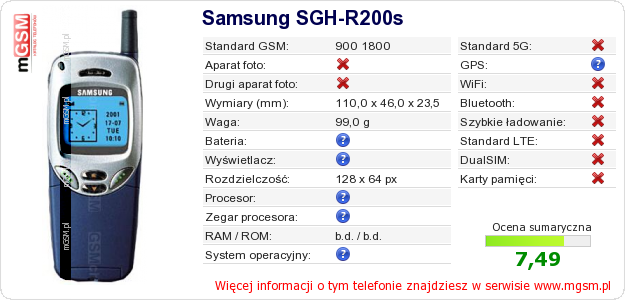 Dane telefonu Samsung SGH-R200s na Twojej stronie