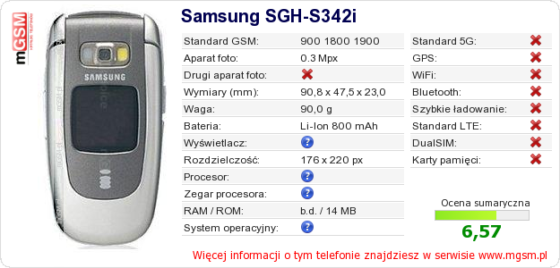 Dane telefonu Samsung SGH-S342i na Twojej stronie