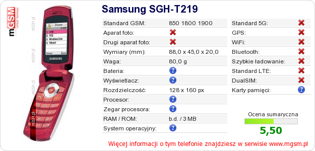 Dane telefonu Samsung SGH-T219 na Twojej stronie