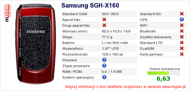 Dane telefonu Samsung SGH-X160 na Twojej stronie