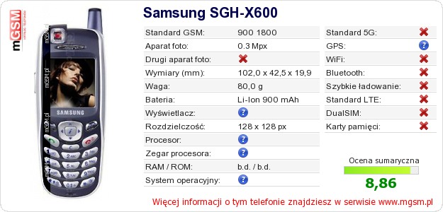 Dane telefonu Samsung SGH-X600 na Twojej stronie