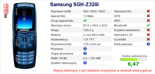 Dane telefonu Samsung SGH-Z320i na Twojej stronie