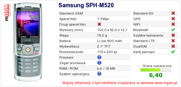 Dane telefonu Samsung SPH-M520 na Twojej stronie