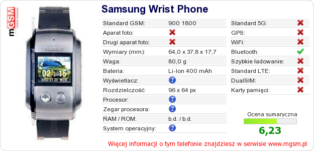 Dane telefonu Samsung Wrist Phone na Twojej stronie