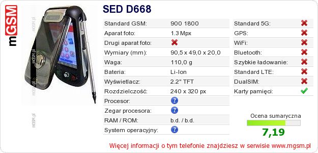 Dane telefonu SED D668 na Twojej stronie