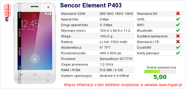 Dane telefonu Sencor Element P403 na Twojej stronie