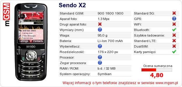 Dane telefonu Sendo X2 na Twojej stronie