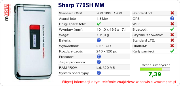 Dane telefonu Sharp 770SH MM na Twojej stronie