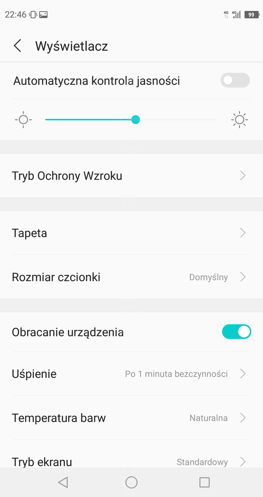 Oprogramowanie wydaje się miejscami niedopracowane, na przykład można wybrać nawigację systemową realizowaną przy pomocy przycisku głównego (tj. skanera linii papilarnych). To świetna funkcja, która pozwala zwiększyć obszar roboczy przez pozbycie się paska z przyciskami systemowymi - niestety w C10, mimo aktywowania tej funkcji, pasek wciąż pozostaje na ekranie. Na dodatek przestrzeń ekranu głównego wydaje się słabo zagospodarowana, np. przez wielkości notcha pasek powiadomień jest dość gruby, przez co występuje duża przestrzeń między nim a pierwszymi elementami menu. Poza tym nie mam do oprogramowania większych zastrzeżeń, Sharp opiera się na zestawie aplikacji od Google i nie zaśmieca softu aplikacjami zewnętrznych producentów. Dodaje też garść funkcji, które mają ułatwić korzystanie z interfejsu, takie jak obsługa gestów (jako Ruch somatosensoryczny w zakładce Ustawienia specjalne), przycisk pływający (określony jako Menu podręczne w zakładce Ustawienia klawiszy nawigacji), dopasowanie parametrów wyświetlanego obrazu, filtr światła niebieskiego, rozpoznawanie twarzy czy możliwość uruchamiania poszczególnych aplikacji poprzez skaner linii papilarnych.